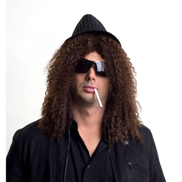 Once again we have a great wig with a lot of versatility. If a guy wears it, he can be Slash, if a woman wears it, she can be Cher, a Gypsy, etc. The hat is not a part of the wig.