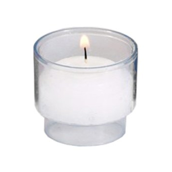 Votive Candle 6 Hour Plastic Cup is disposable so you can entertain guests with an inviting ambiance with little to clean up. Plastic cup is 1 3/8″ tall x 1 1/2″ wide. Great for luminaries, wedding receptions, etc. Sold individually..