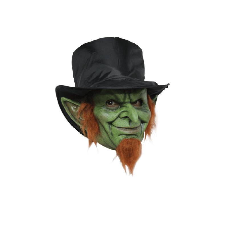 The Mad Goblin mask is molded from dark, weathered leather, giving it a worn and ancient appearance. Its surface is etched with intricate patterns reminiscent of arcane symbols, hinting at the mask’s connection to dark magic and forbidden rituals. The leather is cracked and discolored in places, as if it has weathered centuries of use and abuse.
