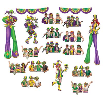 Mardi Gras Reveler Props measures anywhere from 17″- 42″. There are 18 props per package including group photos and jesters on stilts.