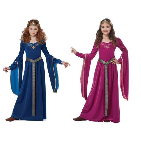 Medieval Princess will help you bring out the royal, elegant spirit in you. Wear this for Robin Hood’s maiden, or to the Renaissance festival. It is available in either teal or maroon. It is a floor length dress with long sleeves. Bell sleeves flow from the elbow to give a royal appearance. It includes a golden crown. The belt attaches around the waist and flows down the front of the dress. Buy this for Halloween, themed parties throughout the year, plays, renaissance festivals, and more.