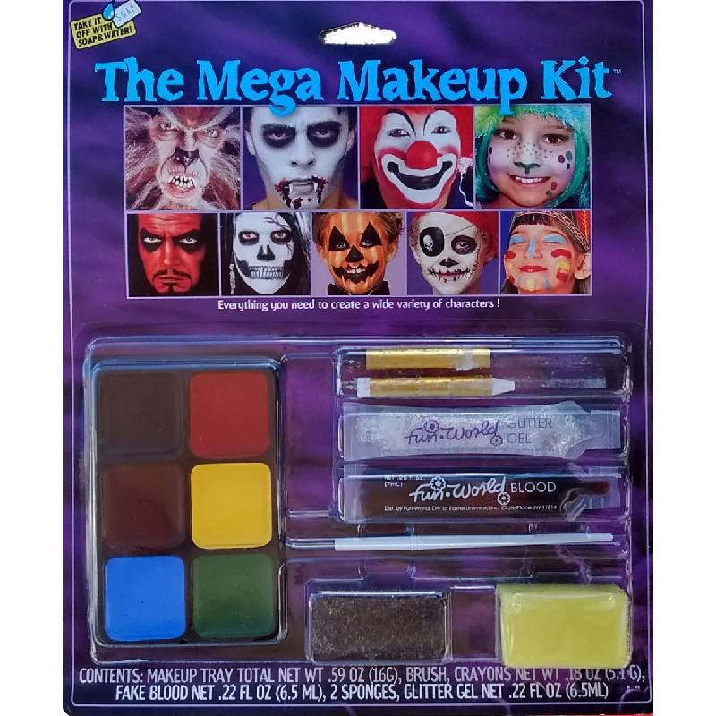 Mega Makeup Kit is perfect for the whole family or individual fun. Buy this for Halloween parties, themed parties, character portrayals, and more. Use this for devils, monsters, clowns, witches, vampires, and more.