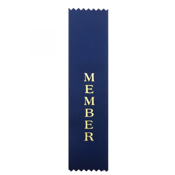 This flat award ribbon is royal blue with gold print. It measures approximately 2″ wide by 7″ long. It can be fastened with a straight pin or safety pin; these are not included.