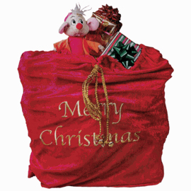 “Merry Christmas” Velvet Toy Sack is made of red velvet with “Merry Christmas” embroidered in gold. It has an easy to carry shoulder strap. Size is 30″ x 36″.