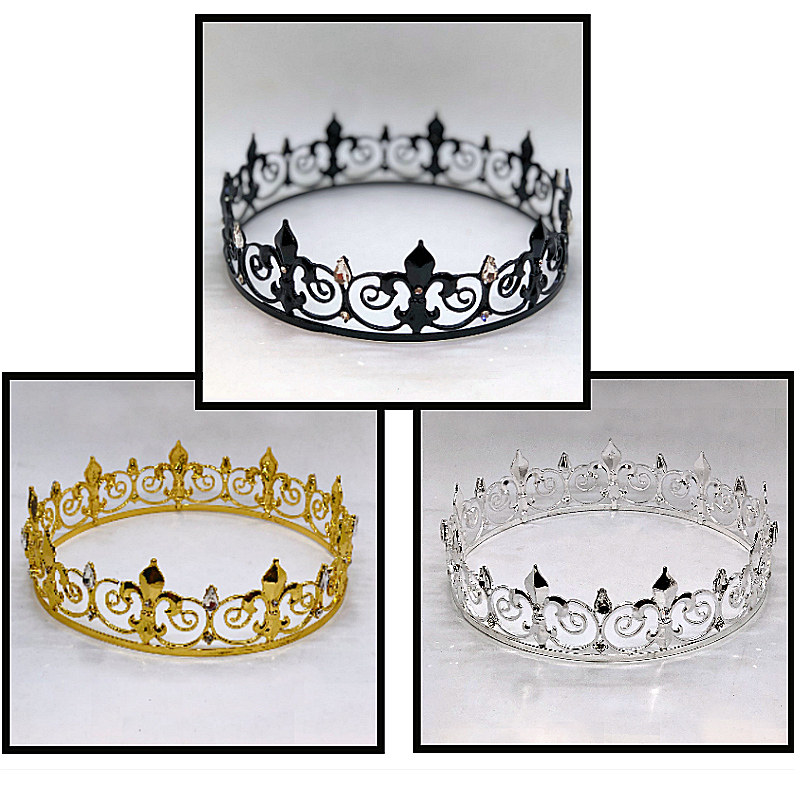 These lightweight metal crowns feature nine fleur-de-lis points and both round and teardrop rhinestones. Available in black, silver, and gold. Perfect for School Homecoming and Prom, Mardi Gras, Renaissance faires, weddings or costume parties.