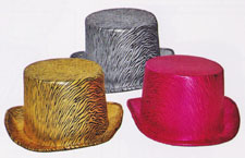 These top hats are made of metallic fabric and have a fine Tiger Stripe to them.