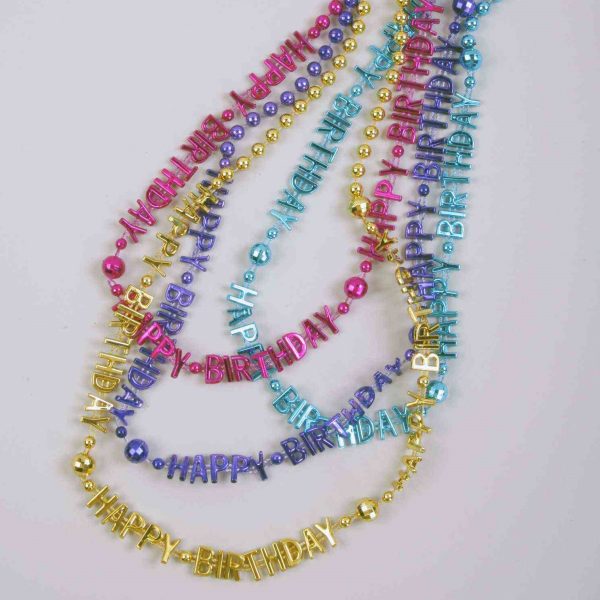 Metallic Happy Birthday Bead Necklace are colorful neck decorations for the birthday person!