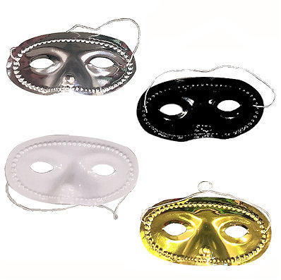 Metallic Plastic Domino Half Mask are economically priced masks for large scale Halloween party or masquerade events. Disguise your face using these gold and silver metallic plastic masks. Molded to fit your face for extra comfort. Masquerade or costume parties are a great way to entertain. Make sure all your guests can participate in the fun by giving a way a mask as a party favor. Party guests love to be in disguise. Stock up on eye and half masks to make your night a success! Each mask includes an elastic cord to hold mask tightly to the head.