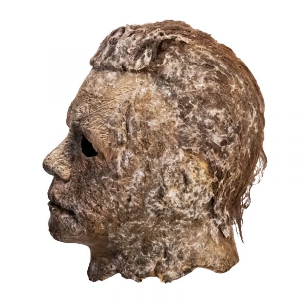 Michael Myers Halloween Ends Mask is officially licensed from the 2022 film. This mask is an exact replica of the one worn in the actual movie. It features extreme weathering details including a mold affect. The mask measures approx 26″ around at the brow.
