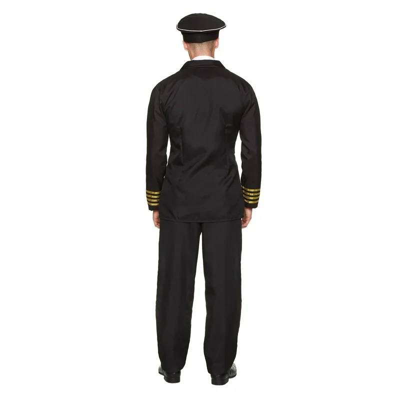 Turn even lady’s eye with this Airline Pilot costume! The costume includes a pilot-style jacket in black, resembling the uniform worn by airline pilots. The jacket might feature gold r trim, epaulets on the shoulders, and embroidered patches indicating the pilot’s name of “Hugh Jorgan.” A matching pilot’s hat is part of the ensemble. The hat resembles a captain’s cap with a gold badge at the front and a black visor. The costume includes tailored trousers in a matching color to the jacket. The pants are designed to complete the pilot uniform look.