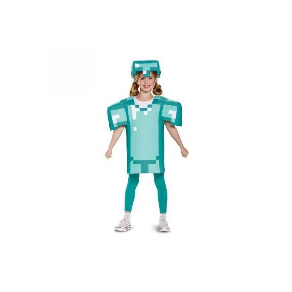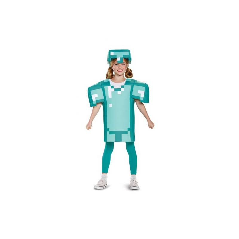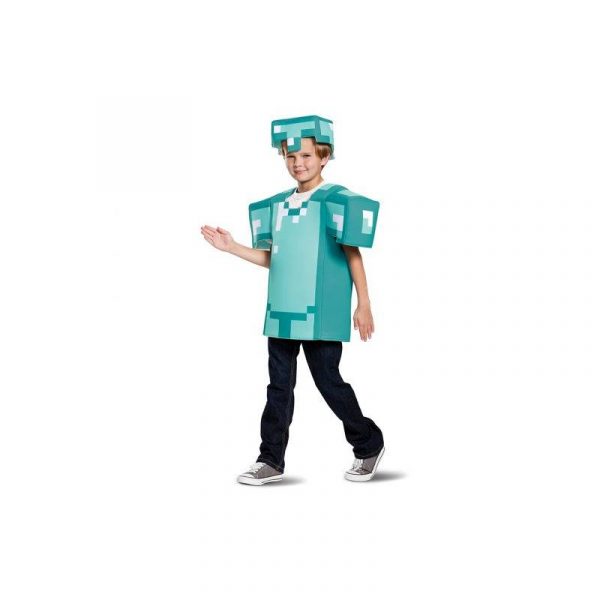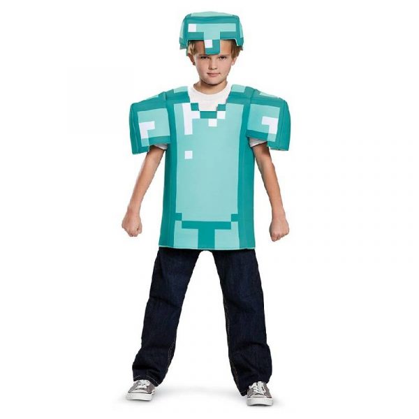 Explore infinite worlds with Minecraft Armor Childs Costume. Build homes, castles, barns with walk-in closets, the possibilities are endless! Get together with 3 other players and travel through multiple levels. Ward off monsters and mobs. Battle Arch-Illager and learn how being part of a team can be beneficial. The game doesn’t discriminate and neither does this unisex costume. Wear this for costume parties, themed parties, Halloween, cosplay or other special occasions.
