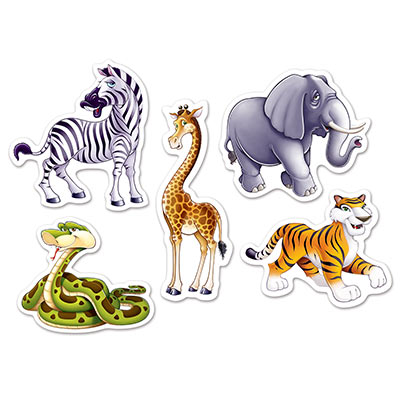 These cutouts feature happy zebras, giraffes, cunning tigers, elephants and slimy looking snakes.