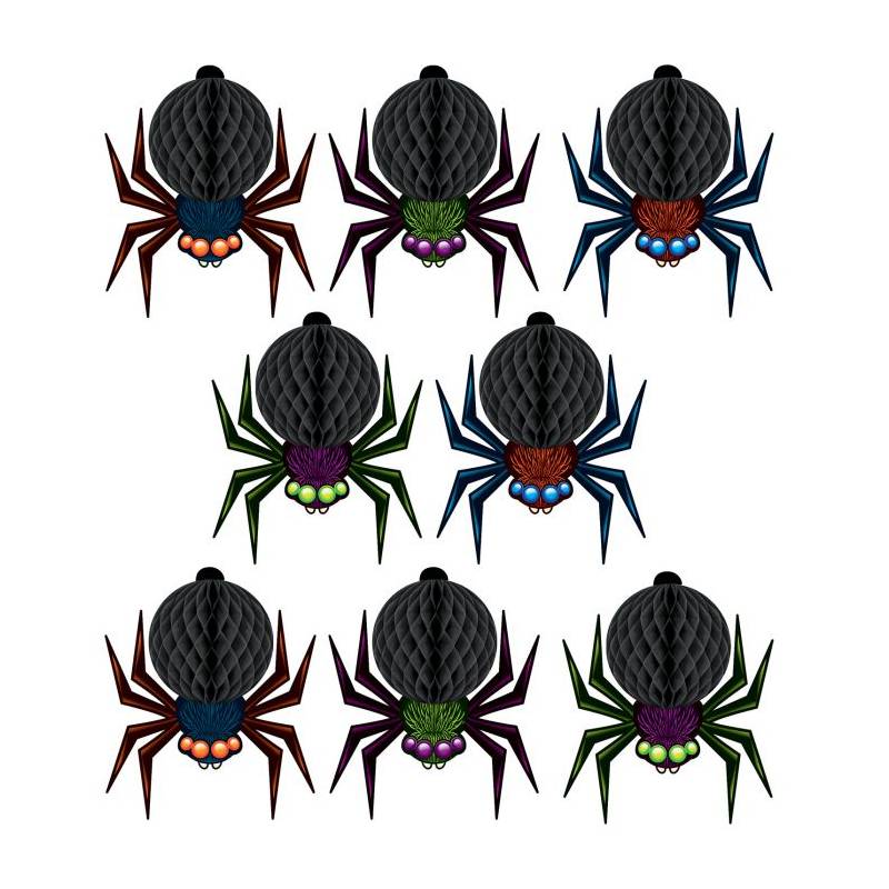 Mini Tissue Spiders have a 3-D body. 6′ cord is included making it easy to hang. They measure 5.75″. These tissue spiders has cardboard head and legs. Decorate for events at home, school or event center. 8 spiders included.