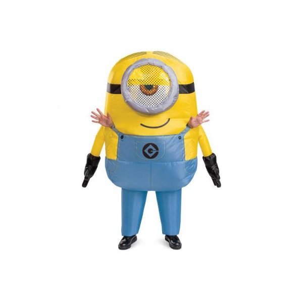 Be the friendly, playful, smart, and funny Minion Stuart. This Inflatable Adult Costume is the best for Halloween, themed parties and events throughout the year, theatrical performances, and more. This is a blue and yellow nylon costume with character specific art design. You can easily see through the clear plastic window disguised with Stuarts one eye goggle design. You will have so much fun wearing this inflatable costume! It comes with an air-inflating fan. This keeps the costume inflated and provides excellent ventilation. It requires 4 AA batteries (not included). This comes in an adult standard size. Inflate your party experience and have a great time!