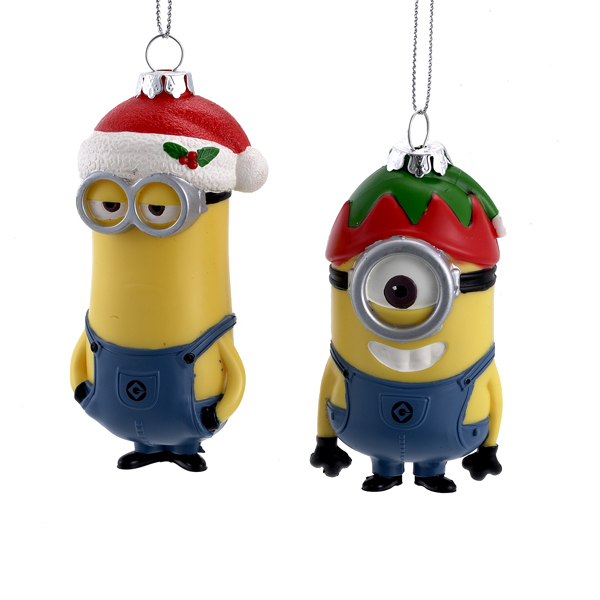 3″ tall Minion Ornament – A “Despicable Me” official Christmas Ornament. Available in two different styles. Each Minion is wearing either a Santa hat or an Elf hat.