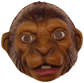 Vacuum form plastic monkey mask is held in place with elastic string. Mask covers front of face only.