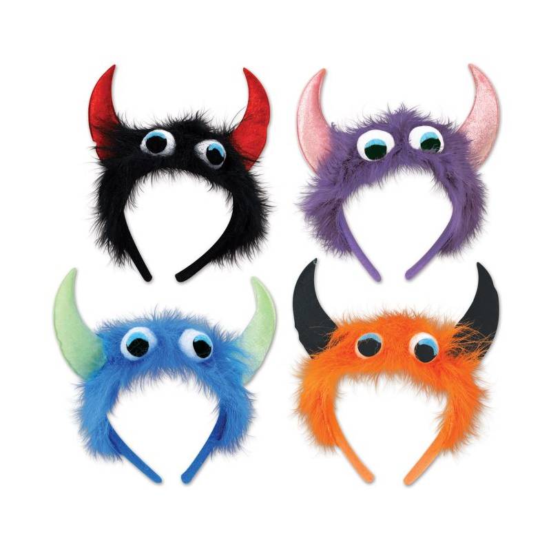 Monster Headbands are a cute and quick way to accessorize your Halloween look. Wear these to office parties, or school celebrations. They fit most adults. These furry monsters sit on a cloth-covered snap-on headband. Be scary cute this Halloween!