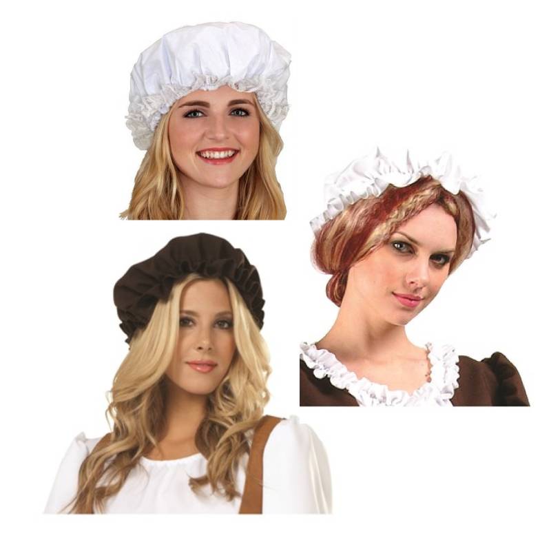 This white Mop cap has is a good quality cotton hat. It makes a wonderful costume accessory for many time periods and characters. As you can see from the information listed below, (taken from Wikipedia.com ), mop hats or mob caps have been around for centuries.