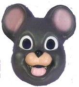 This Mouse Mask is made of vacuum form plastic. It has an elastic string across the back to hold it in place on the head. It is a grey mouse with pink ears, wide eyes, brown nose and a pink tongue.