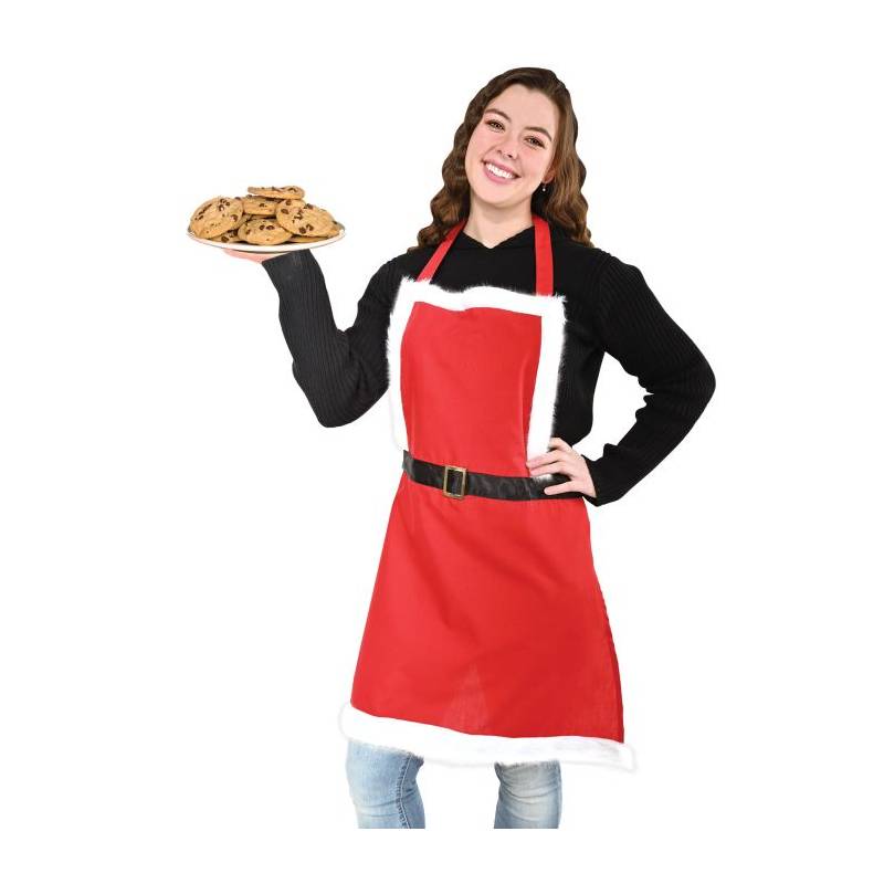 Mrs Claus Fabric Novelty Apron will put you in the holiday spirit. Wear this to protect your clothes as you make your favorite dish. One size fits most.