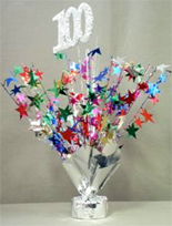 This balloon weight centerpieces is heavy enough to hold a lot of balloons, but it also looks good just by itself. The number 100 in glittered foam at the top of this one makes it perfect for someone celebrating a 100 years!