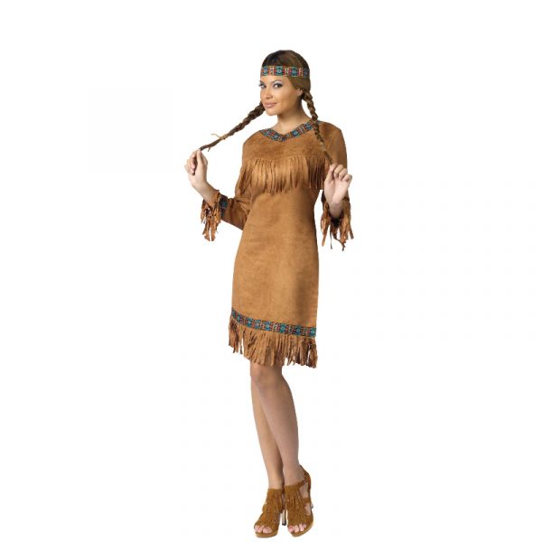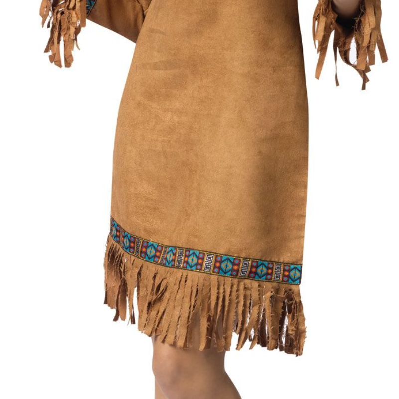 Native American Dress Pow Wow includes a dress and headband. Wear this for Halloween, cosplay, drag, plays, education, theatrical productions and themed parties. This dress incredible soft. It closes at the back of your neck with velcro.