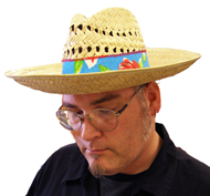 This hat looks like it has come from “the islands”. A fun hat to wear to a luau or a Jimmy Buffet party.