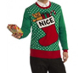 You can win the Ugly Sweater contest with this one! It is a soft knitted acrylic styled very loose to fit over other clothing.