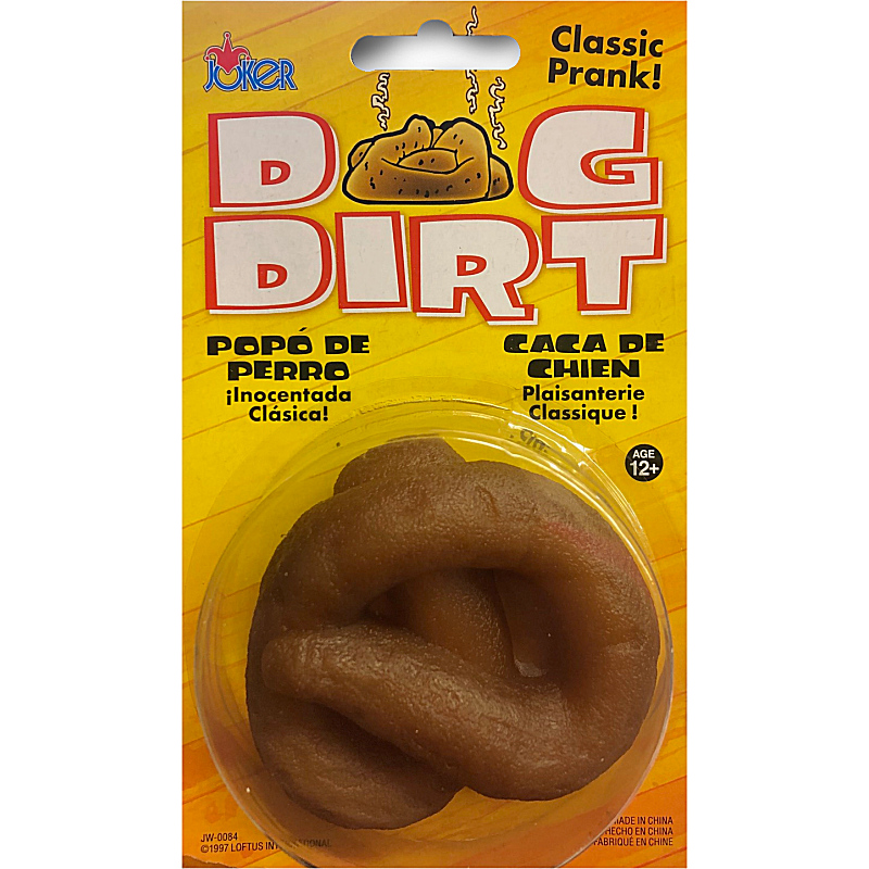 Novelty Dog Dirt – For Tricks and Jokes. This Novelty plastic Dog Dirt looks pretty much like the real thing. Put it where the real stuff shouldn’t be, for a funny joke. It can be put almost anywhere.