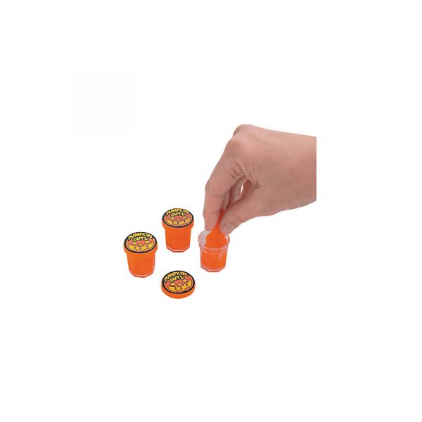 This tiny container contains just the right amount of orange Novelty Pumpkin Guts Slime to gross out your kids! Try it for Halloween.