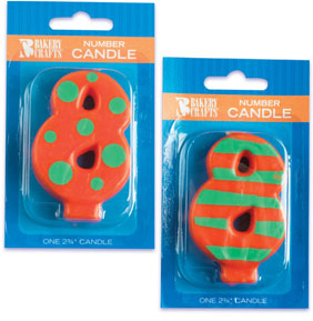 Number 8 Candle in Stripes and Dots. These number candles are for the top of the cake.