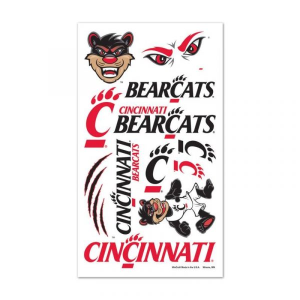 Officially Licensed Cincinnati Bearcats Temp Tattoo Sheet has 12 tattoos per sheet. They are easy to apply and remove. Wear these to tailgates, game day celebrations and spirit week. These can also be used in raffle baskets.