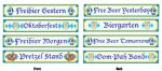 Oktoberfest Cardboard Top Hat is decorated with the classic Bavarian blue and white diamond-shaped pattern with a gold lion in a shield. A solid blue line at the base of the hat with “OKTOBERFEST” written in black outlined in gold.