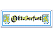 It says Oktoberfest in the center and has a crest on either side of the word with a stylized lion in each one.