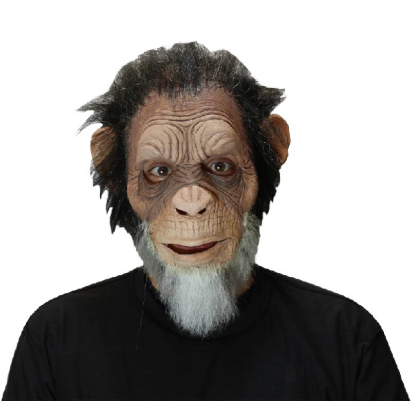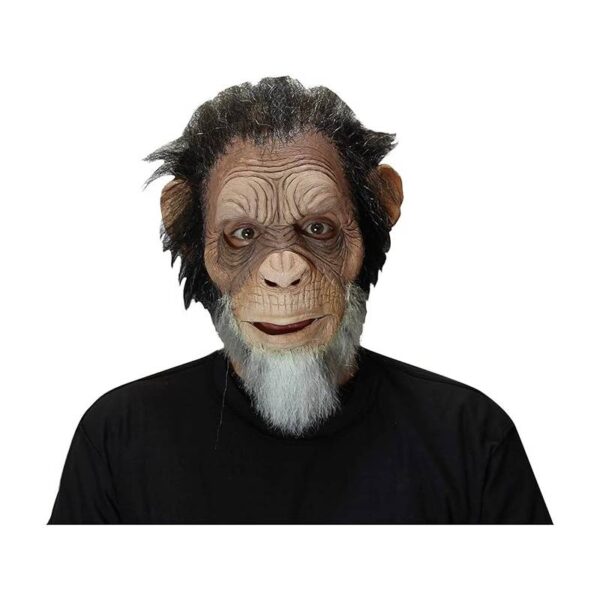 The mask is made of durable materials like latex, molded to resemble Julius’s face with his characteristic wide eyes, large ears, and mischievous grin. The coloring is slightly muted or distressed to convey the “old” look. This mask also includes details like wrinkles or cracks to enhance the aged appearance. His head is adorned with thinning brown hair. Julius also has a goatee, which is various shades of gray. The texture is such that it resembles the hair of an ape.