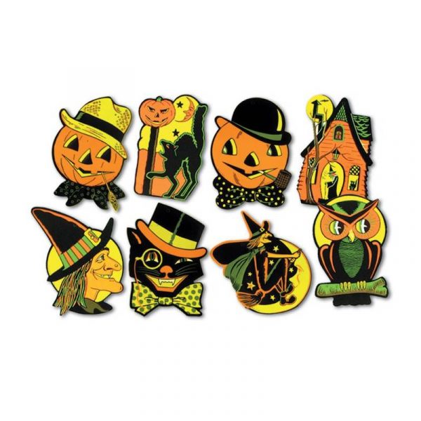 Packaged Halloween Cutouts are cute and family-friendly decorations. It has dapper pumpkins, spooky black cats, witches and a curious owl. Easily hang these on walls. Set them around tables so children can play with them. These are a wonderful addition to your Halloween party decorations.