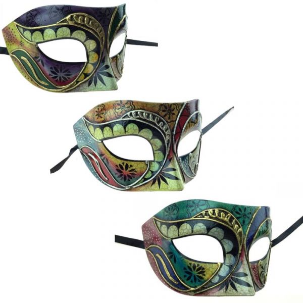 Wear a beautiful Painted Design Venetian Half Mask to celebrate Burning Man, Mardi Gras or to any masquerade party! Perfect for men or women! Choose from three multi-color designs.