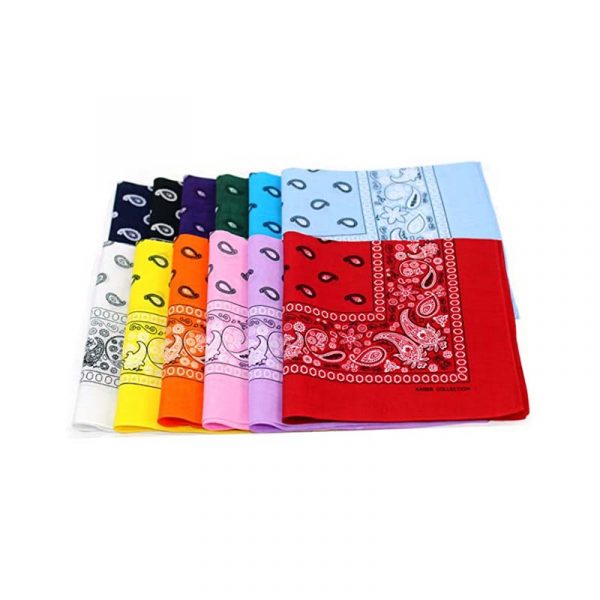 This 21 inch square cotton solid-color bandanna with black paisley print makes a great face mask for a Western look! Wear it as a scarf or neck tie, too!