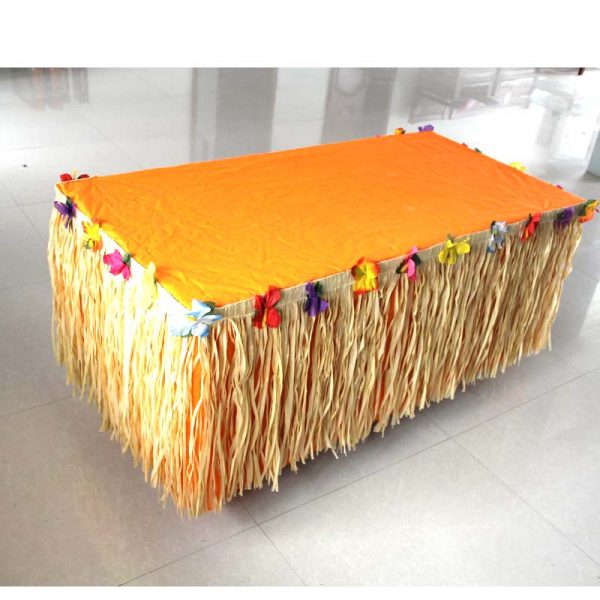 Celebrate a tropical mindset at home with a beautiful Paper Raffia-Look Table Skirt with a Floral Band! Fringe measures 30″ x 12′ long! Use it to decorate for your next Hawaiian Luau, island-themed party, or pool-party!
