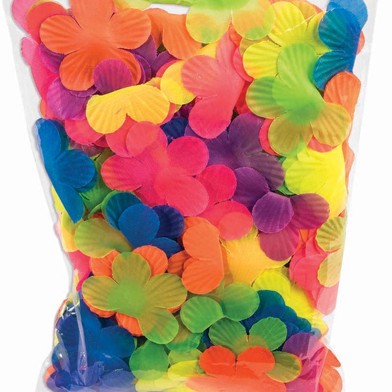 Use these Party Fabric Luau Fluorescent Petals to decorate for a Luau! Spread these pretty flowers on your table for your 60s party! Package includes 150 colorful flowers. Colors include fluorescent green, pink, blue, yellow, orange, and purple.
