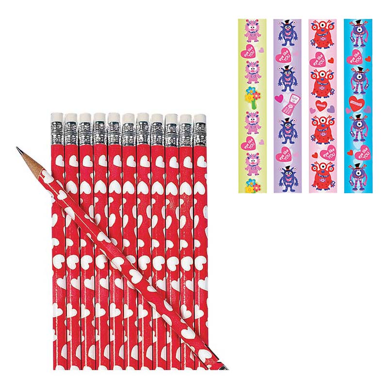 Get this great deal on 12 Pencils for your Valentine’s Day party. Each package contains 12 monsters or hearts printed pencils.