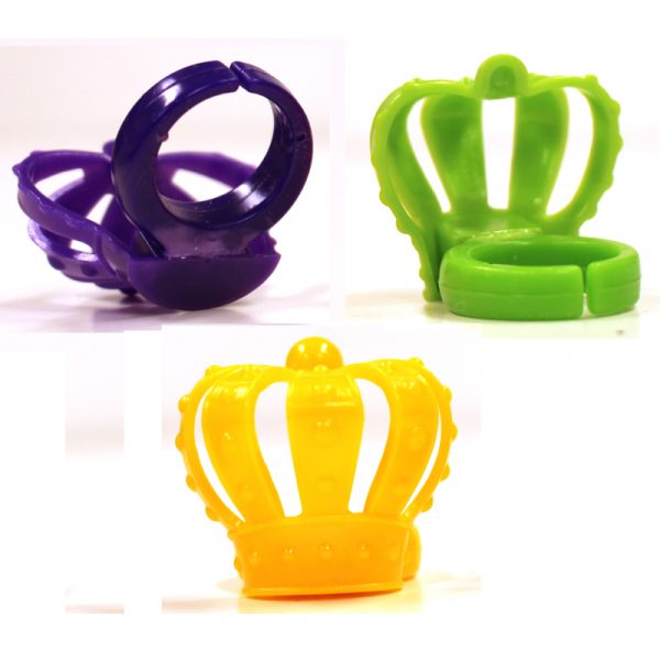 Use these rings for your next Mardi Gras party. Set these out on tables, wear them, or put them in a king cake.