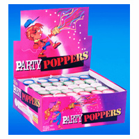 Confetti Popper. These party poppers are shaped like little champagne bottles. They come in assorted colors. Just pull the string and they “pop” out strands of paper confetti.