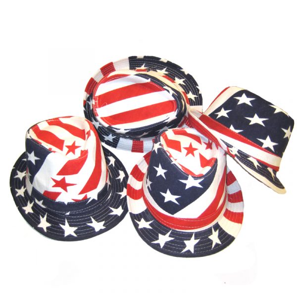 Patriotic Fedora Printed Fabric Hat. Four assorted patriotic designs.