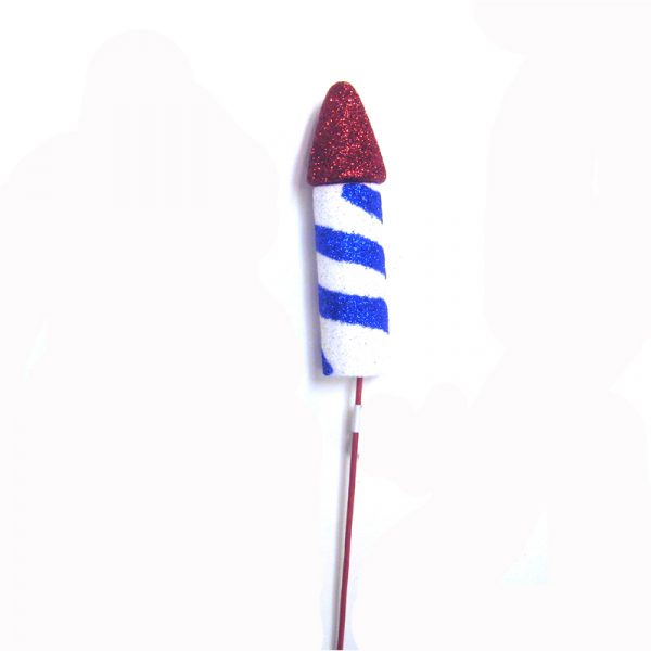 Patriotic Glitter Rocket Pick is 4.5″ tall. Each one is on a stick. Perfect for adding to a floral arrangement, wreath, or patriotic centerpiece.