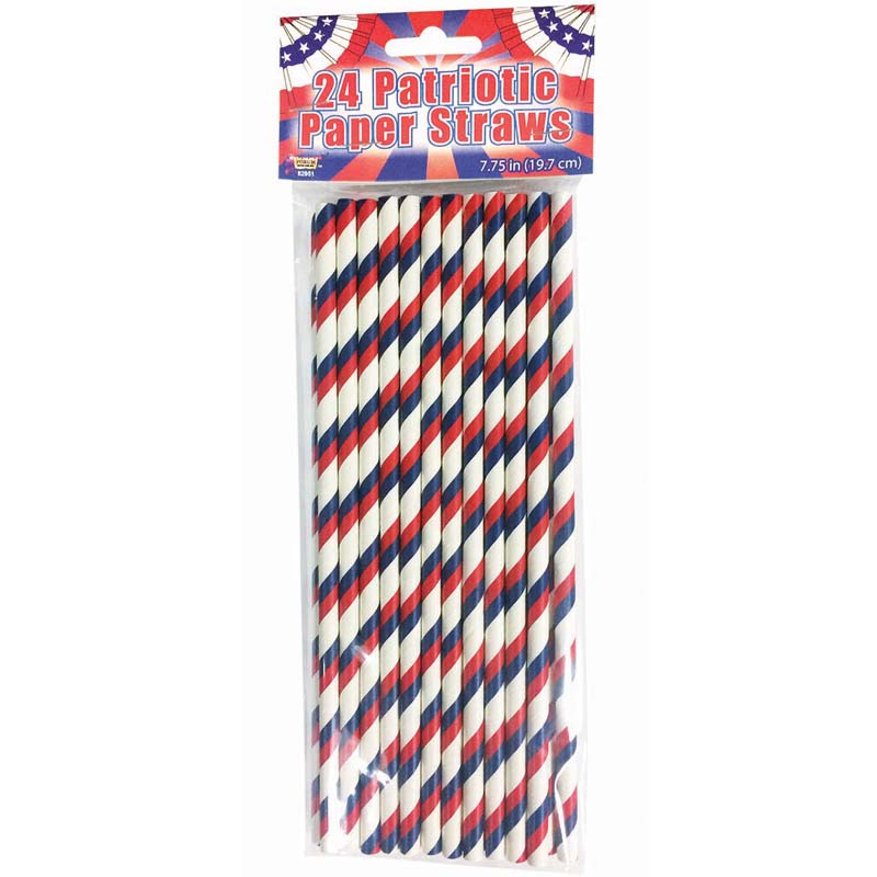 Celebrate the Red, White, & Blue by going green with these Patriotic Swirl Stripe Paper Straws! Use these sturdy 7.75″ Straws at your 4th of July party or any time to show your patriotic pride. Each package includes 24 paper straws.