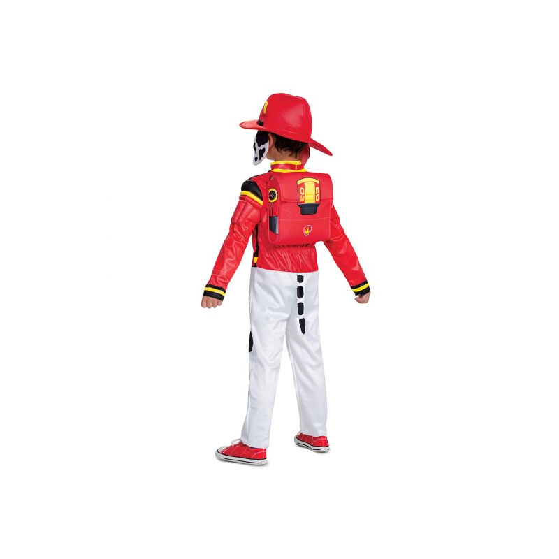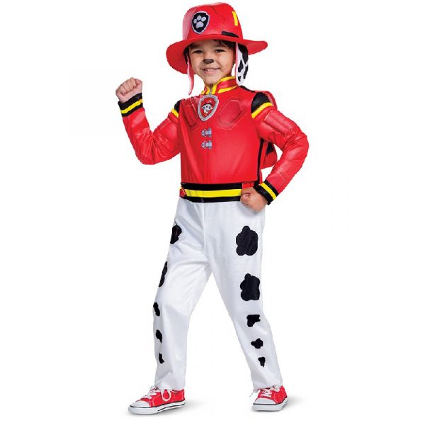 Officially licensed Nickelodeon Paw Patrol child costume. Available in sizes Toddler and Small, this Paw Patrol Marshall Child Halloween Costume includes a Dalmatian jumpsuit, character hat, and official Pup Pack! Your child will love the transformation to Chase or Marshall when wearing this costume!