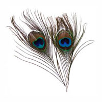 Natural Peacock Eye-Tip Feathers – 2 Pack. These Natural Peacock Eye-Tip Feathers are approx. 6″ – 7″ long each. There are 2 in a pack. Use them for crafts, hair ornaments, bouquets, etc.
