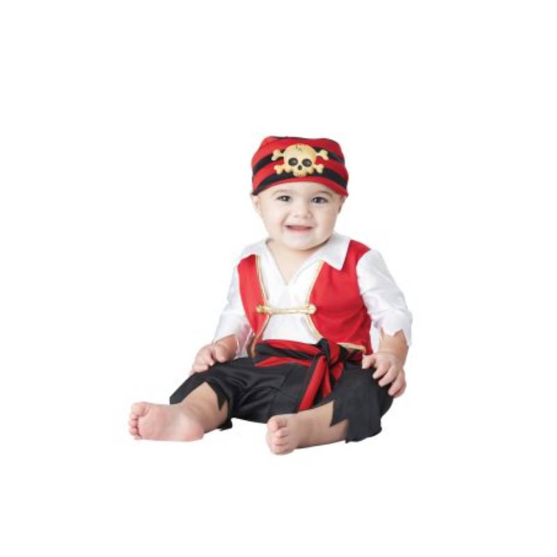 Pee Wee Pirate Infant Costume is fully equipped to steal the hearts of all who see your baby. This costume includes a shirt with an attached vest, pants with an elastic waist, beanie to keep his/her head warm, and a waist sash to complete the costume. Buy this for Halloween, themed parties throughout the year, plays, school activities, and more. It is available in 2 infant sizes.