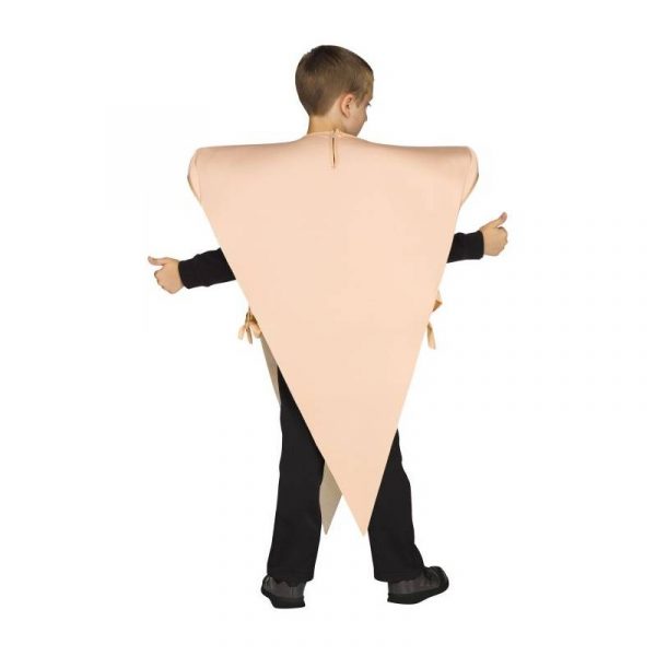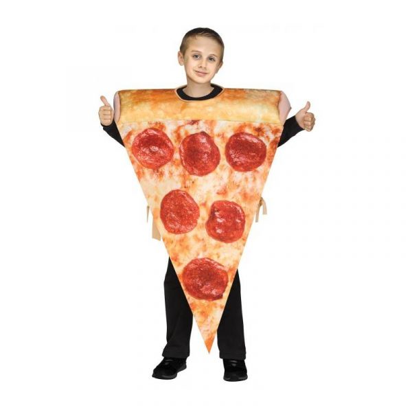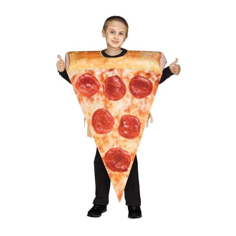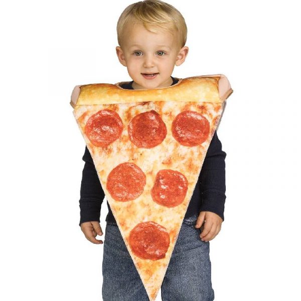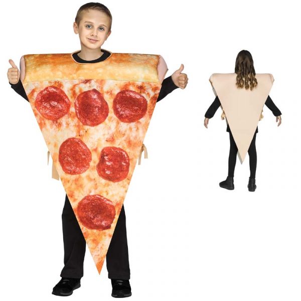 Bring the Pizza to the party! Pepperoni Pizza Slice Stuffed Crust Halloween Costume includes one tunic. Printed on both sides. Photoreal sauce, cheese and pepperoni on the front. The crust is stuffed and sits comfortably on your shoulders.
